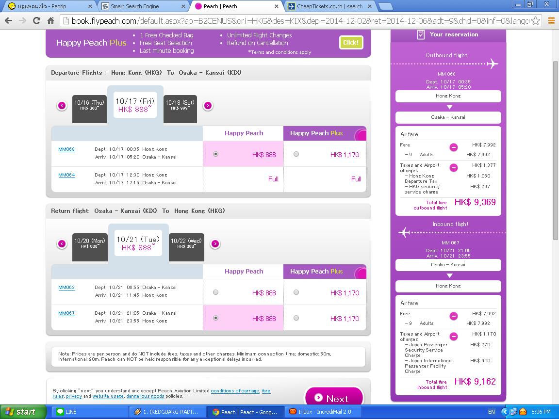 peach airline ช่วยวิจาร์ณหน่อยค่ะ รูทนี้ HK -- Osaka