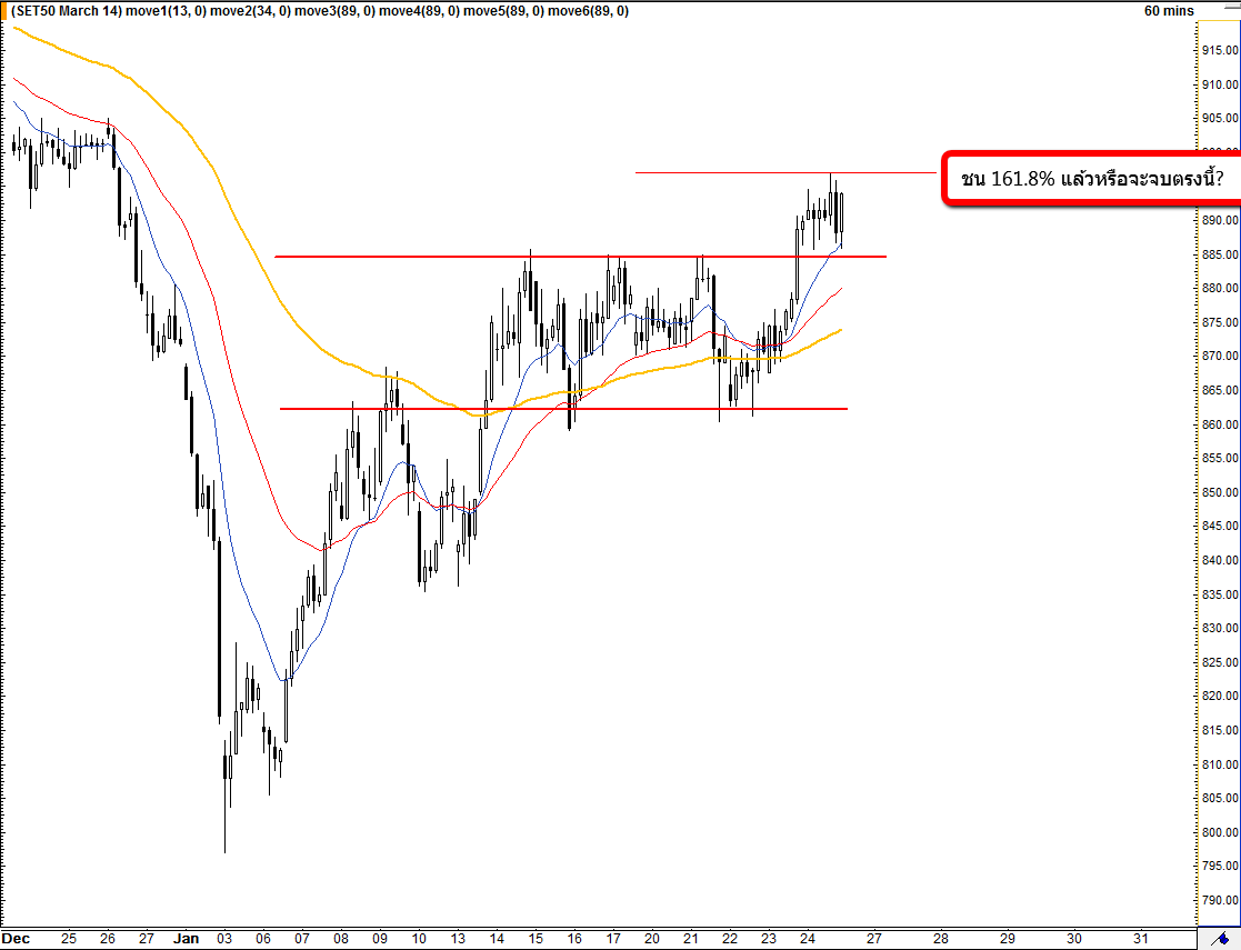 - หลังจาก Side Way มานานก็สามารถทะลุ 885 ขึ้นมาได้แต่ดูจากอาการแล้วดูขึ้นแบบไม่ค่อยมีแรงเท่าไหร่ และก็มาชนแนวต้าน Fibo 161.8% พอดีด้วยอาจจะจบตรงนี้ก็ได้ครับยังบอกไม่ได้ต้องรอดูต่อไปครับ ถ้าคนที่เทรด TF 60 แบบผมคงจะเทรดยากหน่อยนะครับเพราะต้องออกเร็วที่เป้า แต่ถ้าเทรดใน TF ที่เล็กกว่าก็จะมีจังหวะให้เล่นอยู่เสมอครับกลยุทธ์ผมตอนนี้คือรอครับผมยัง Bias หน้า Short เหมือนเดิมครับ