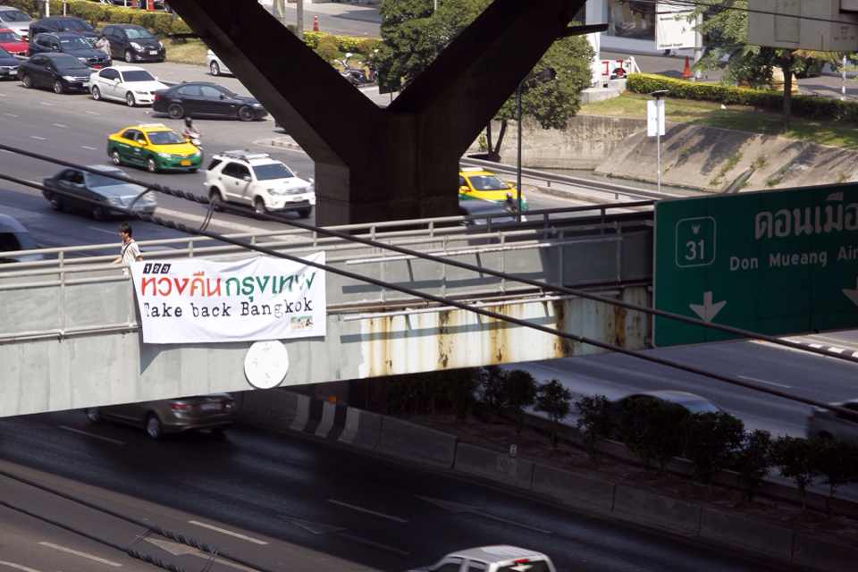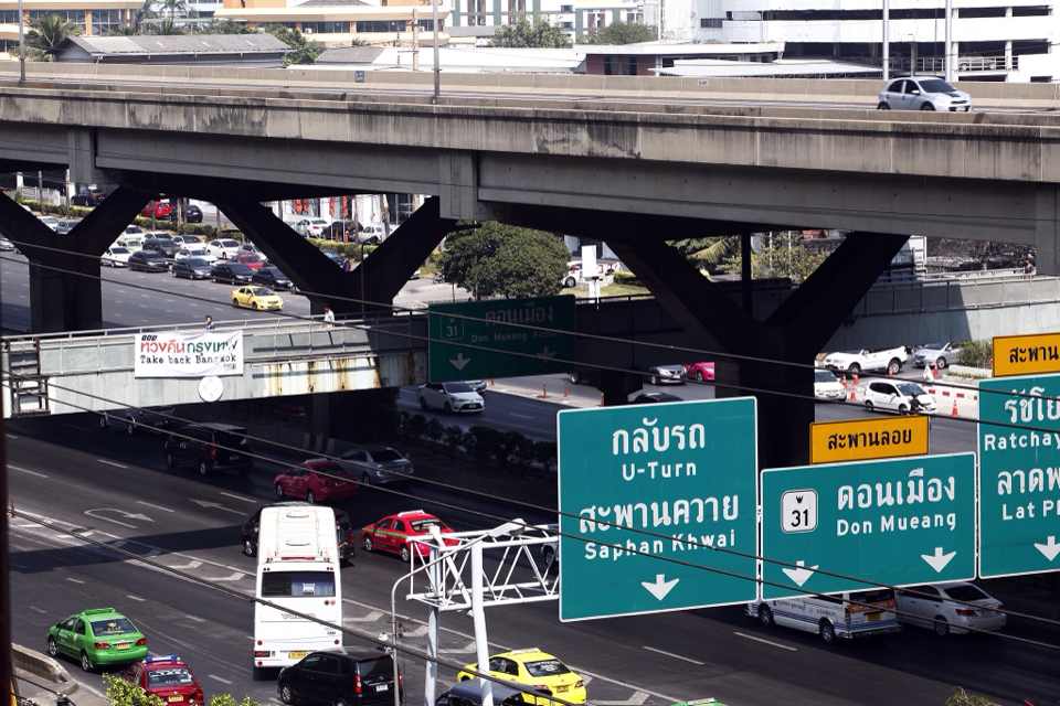 ชาววิภาวดี ดอนเมือง ทั้งขาเข้าและออก คาร์โก และวัดดอนเมือง แห่ขึ้นป้าย "ทวงคืนกรุงเทพ"