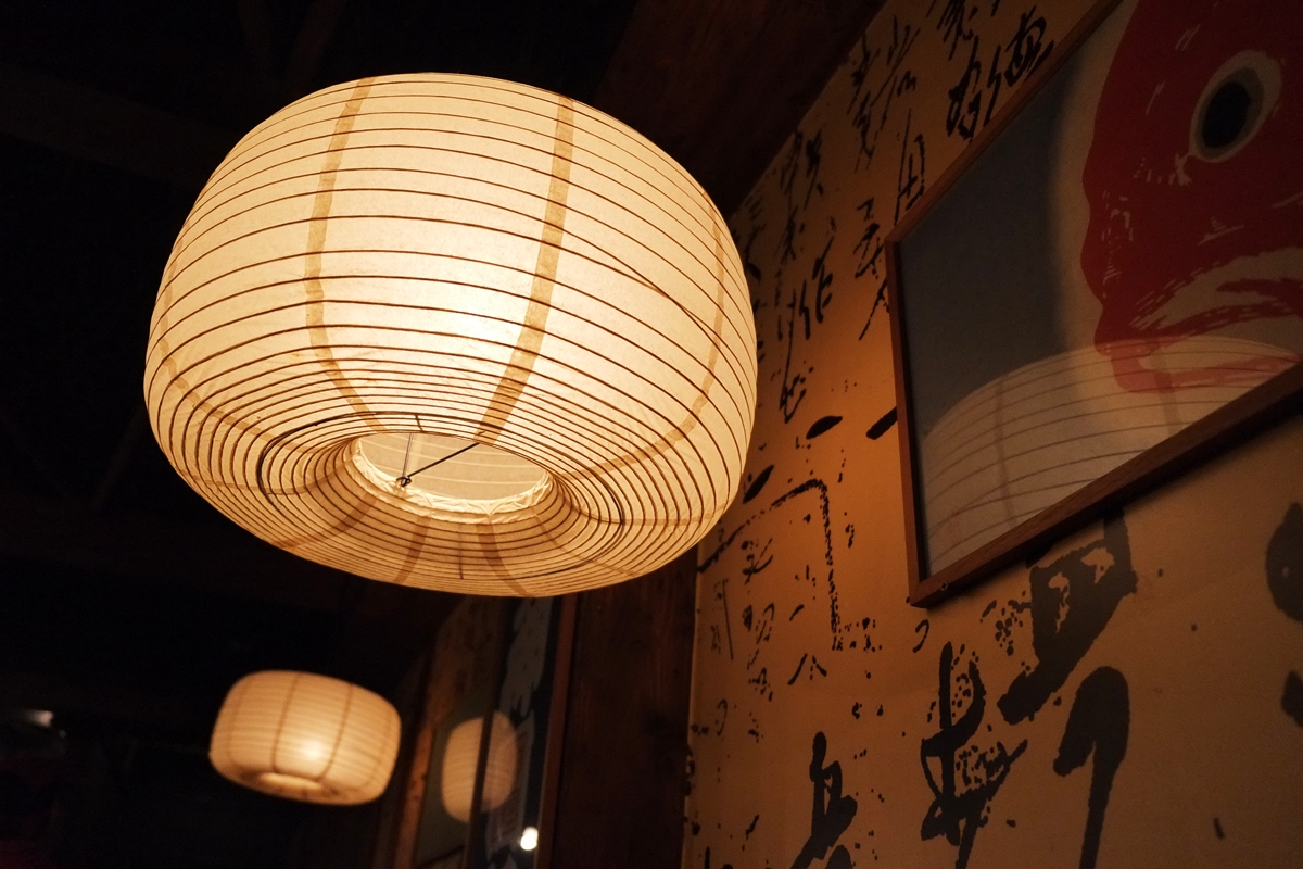 โคมไฟในร้านและผนัง มีกลิ่นไอการออกแบบให้มีลวดลายเหมือนที่ประเทศญี่ปุ่น ซึ่งเป็นประเทศที่ผมยังไม่เคยไป (แล้วดันรู้อีกนะว่าเหมือน!!)