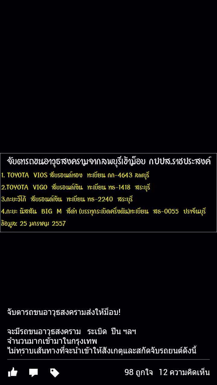 ช่วยกันแชร์ครับ รถต้องสงสัยขนอาวุธหนัก เข้ากรุง!