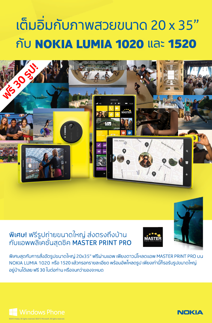 Nokia Lumia 1020 และ 1520 อัดรูป 20x35" ฟรี 30 รูป