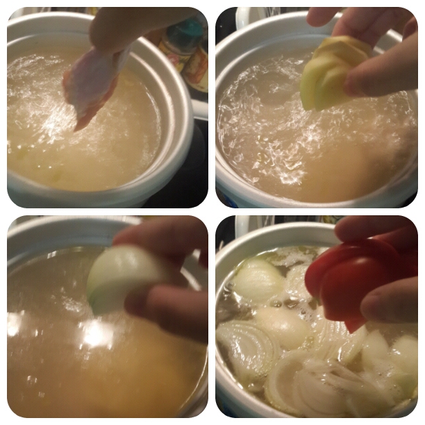 ใส่ซุปก้อนลงไปตอนน้ำเริ่มเดือด ปล. ใช้หม้อหุงข้าวนี่แหล่ะ อยู่คอนโด ถ้าอยู่บ้านก็ติดเตาถ่านได้ ตามสะดวก
