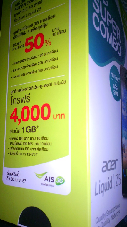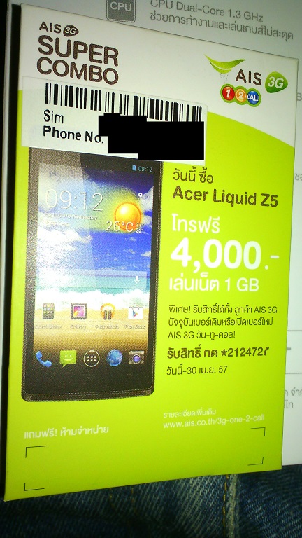 AIS เรื่องซื้อ Acer Z5 ไม่ได้โปร 4000+1GB (ต่อ)