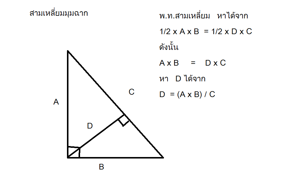 อันที่จริงมีสูตรลัดอีกอันหนึ่ง ที่ตอนนี้ได้ไปอยู่ในหนังสือเรียนมอต้นเรียบร้อยแล้ว ซึ่งเป็นสูตรที่ผมคิดเองตอนที่เรียนอยู่ชั้นมอสาม แล้วผมก็ได้เอาไปบอกคุณครู นั่นก็คือสูตรของการหาความสูงของสามเหลี่ยมมุมฉากหนะครับ หลังจากนั้นไม่กี่ปีก็ทราบว่าหนังสือแบบเรียนก็ได้นำวิธีของผมมาใช้ในที่สุด (ขอสาบานว่าเป็นเรื่องจริงนะครับ ที่บอกว่าเป็นคนคิดขึ้นเองหนะครับ แต่บอกมาแบบนี้คงจะเช็คอายุของผมได้แน่เลย