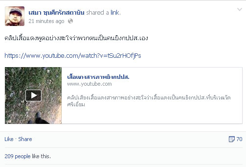 คลิปเสื้อแดงพูดอย่างสะใจว่าพวกตนเป็นคนยิงกปปส.เอง