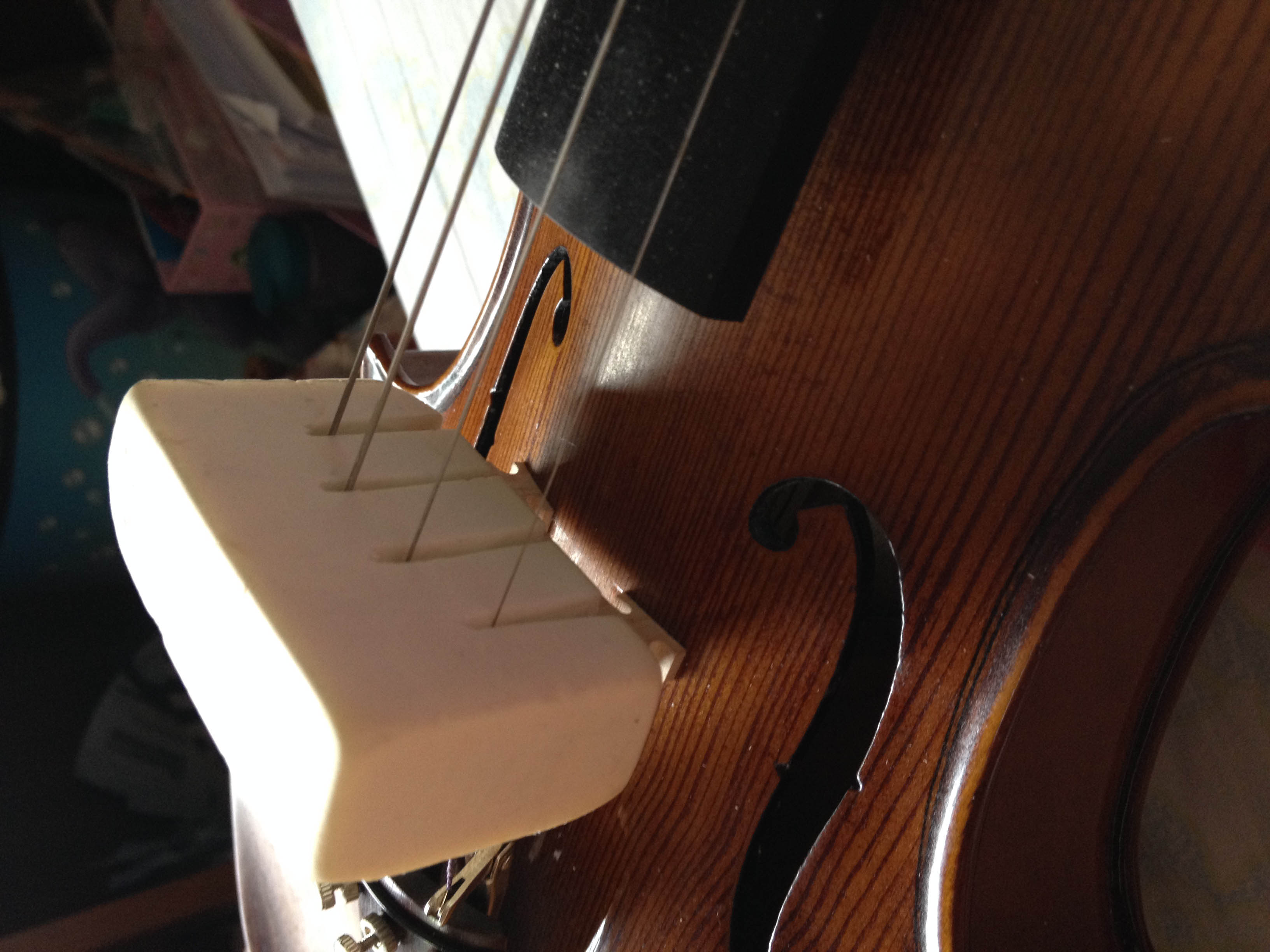 เพราะหย่องไวโอลินมันโค้ง ไม่งั้นมันจะโยกเยกได้ด้วยแหละ หรือชอบแบบโยกเยกได้ก็ไม่ต้องหั่น