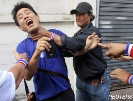 ภายใต้การดูแลประชาชนของระบอบทักษิณ สิทธิเสรีภาพ เต็มที่ไปเลย โบกธง ไม่กี่ชั่วโมง ขึ้นเวทีราชดำเนิน ได้เป็นวีรบุรุษ เพียงชั่วข้ามคืน แต่ภายใต้ระบอบเทือก แค่ถือธงเดินไปมา สมองกระจาย เกลื่อนถนน ที่ราชด