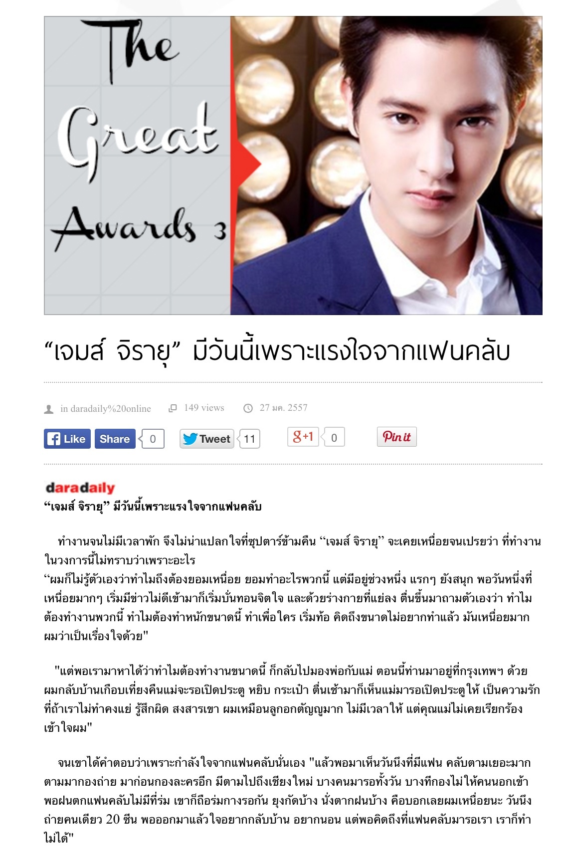 ยินดีกับ เจมส์ จิรายุ - รางวัล cool guy of the year กับนักแสดงนำชายแห่งปี ดาราเดลี่ด้วยค่ะ !!!