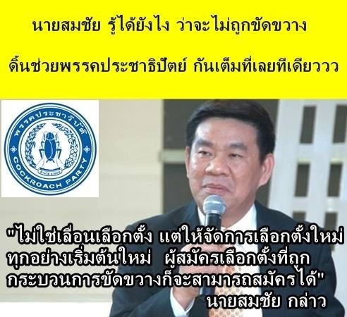 คนขัดขวางการเลือกตั้ง ไม่เห็นว่า กกต. บอกเลยว่าผิด ฐานขัดขวางการเลือกตั้ง และไม่บอกว่า กกต. ต้องรับผิดชอบ แต่ สมชัย บอก ให้รัฐบาลรับผิดชอบค่าใช้จ่าย ถ้ามีการฟ้องร้อง ไม่แน่นะ ที่ ครม. ต้องโดนแจ้ง