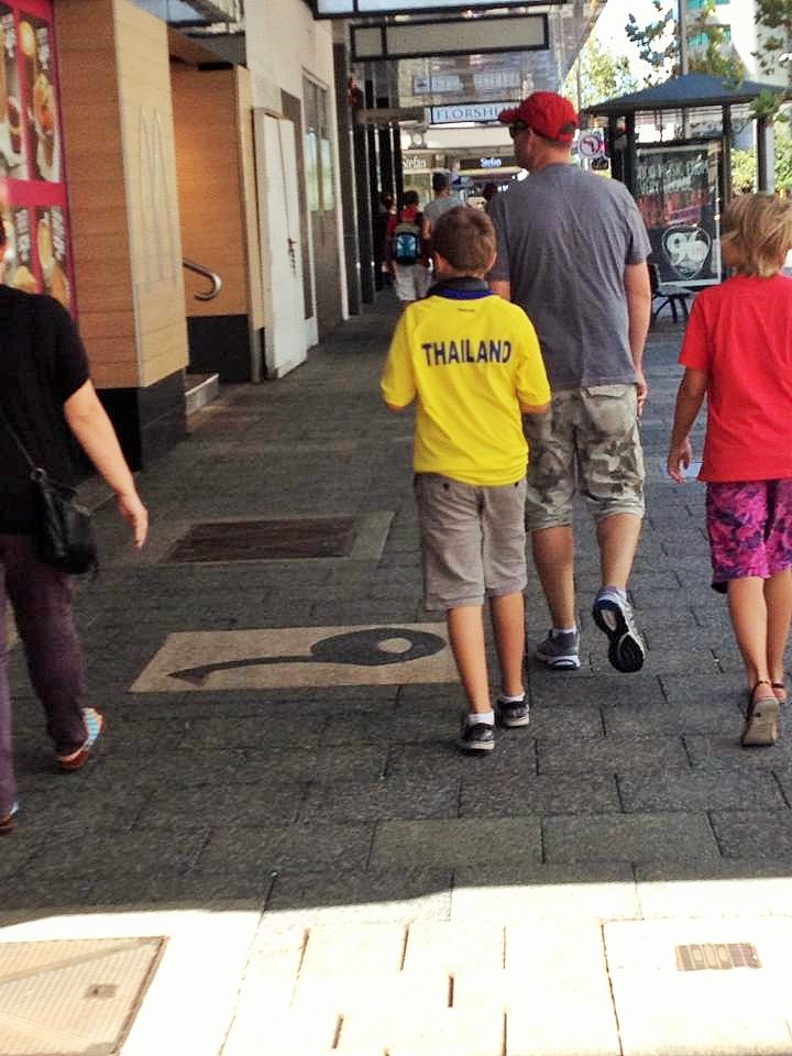 ภาพนี้เป็นภาพหนุ่มน้อยออสซี่ค่ะ ใส่เสื้อสัญชาติไทย เลยแอบเดินตามและถ่ายรูป รู้สึกภูมิใจนิดๆค่ะ อิอิ