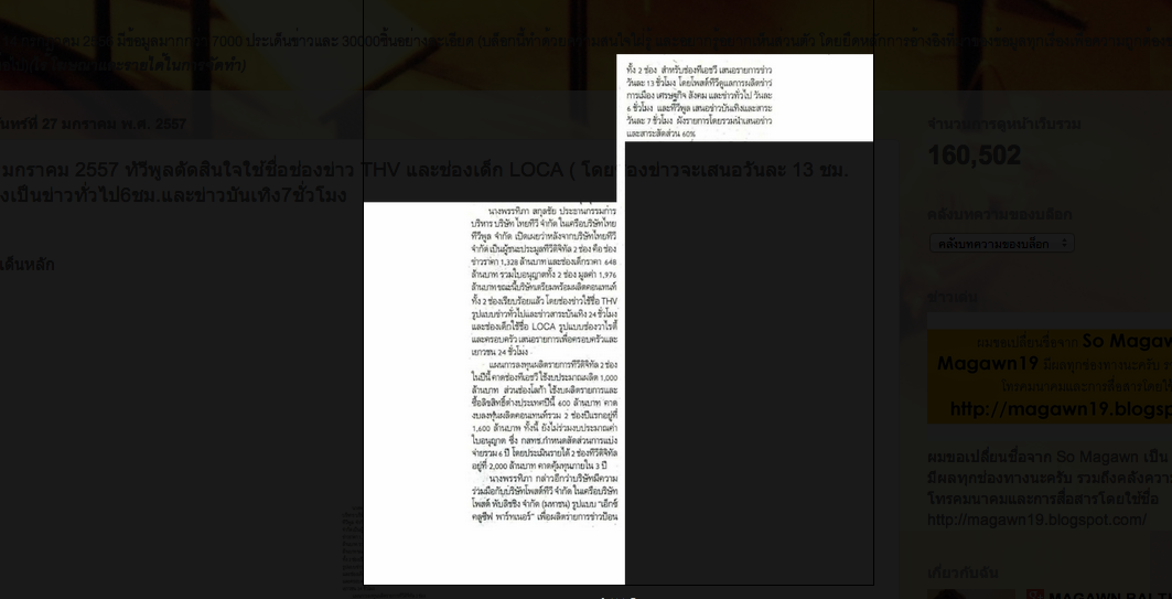 27 มกราคม 2557 (ฉวยโอกาส ตอนขอรับรีบรับ)(เกาะติดประมูลDigital TV) ผู้ให้บริการโครงข่าย Digital TV ของรัฐ MCOT และ NBT ชี้ของบไม่ทันและติดปัญหาการจัดจ้าง (อ้างขอเพิ่มอายุใบอนุญาติอีก2ปี)