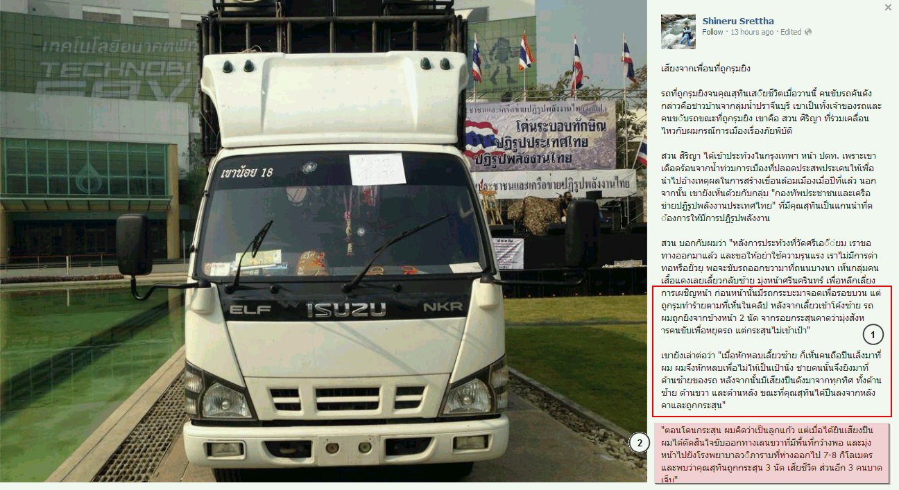 คนขับรถ กปปส คันที่อ้างว่าถูกยิงคือ ประจักษ์พยานสำคัญว่า เหตุการณ์ที่ยิงกันนั้นไม่เกี่ยวกับคนเสื้อแดง