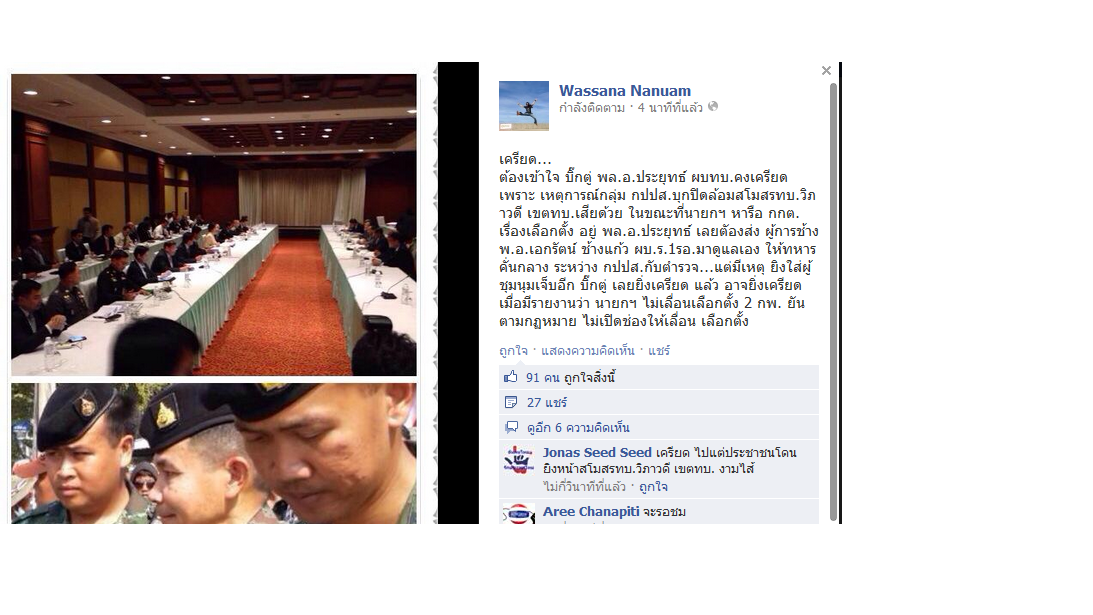 บทบาทของ ผบ ทบ ต่อสถานการณ์ สุเทพ และ สปป ล้านนา