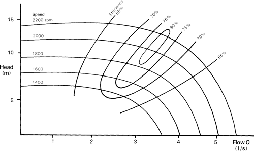 เวลาเรามีกราฟระหว่าง Head กับ Flow ในกราฟแล้วเราจะหาเส้น efficiency เพิ่มขึ้นมาได้ไง