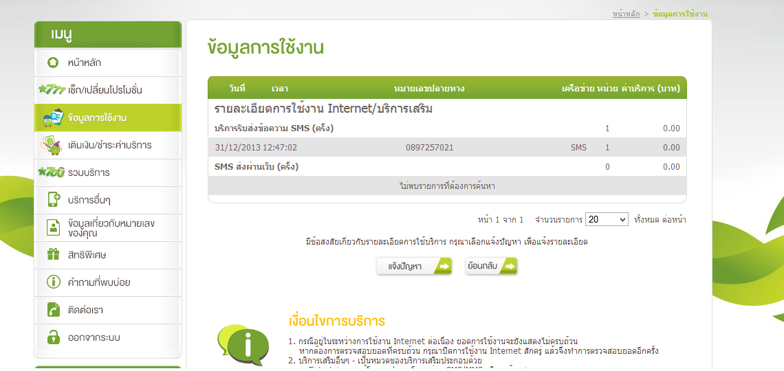 ข้อความคือ ผมส่ง sms ครั้งล่าสุดเมื่อ 31/12/56