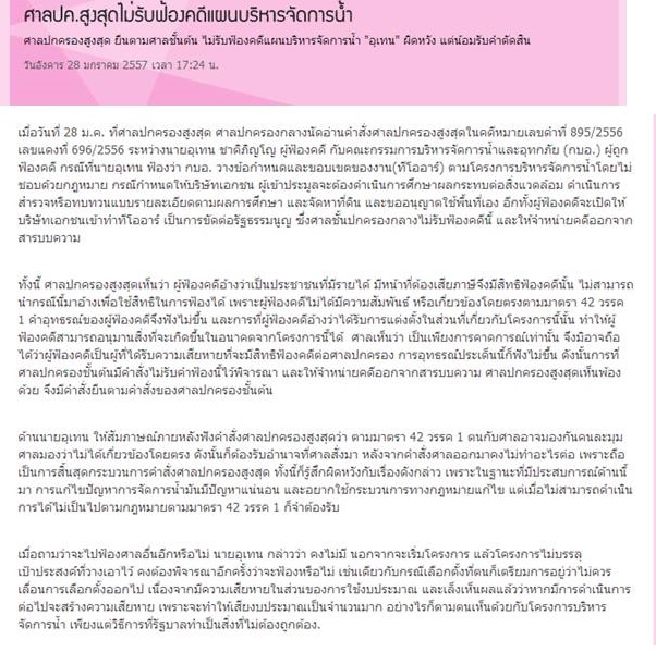 http://www.dailynews.co.th/Content/politics/212084/%E0%B8%A8%E0%B8%B2%E0%B8%A5%E0%B8%9B%E0%B8%84.%E0%B8%AA%E0%B8%B9%E0%B8%87%E0%B8%AA%E0%B8%B8%E0%B8%94%E0%B9%84%E0%B8%A1%E0%B9%88%E0%B8%A3%E0%B8%B1%E0%B8%9A%E0%B8%9F%E0%B9%89%E0%B8%AD%E0%B8%87%E0%B8%84%E0%B8%94%E0%B8%B5%E0%B9%81%E0%B8%9C%E0%B8%99%E0%B8%9A%E0%B8%A3%E0%B8%B4%E0%B8%AB%E0%B8%B2%E0%B8%A3%E0%B8%88%E0%B8%B1%E0%B8%94%E0%B8%81%E0%B8%B2%E0%B8%A3%E0%B8%99%E0%B9%89%E0%B8%B3