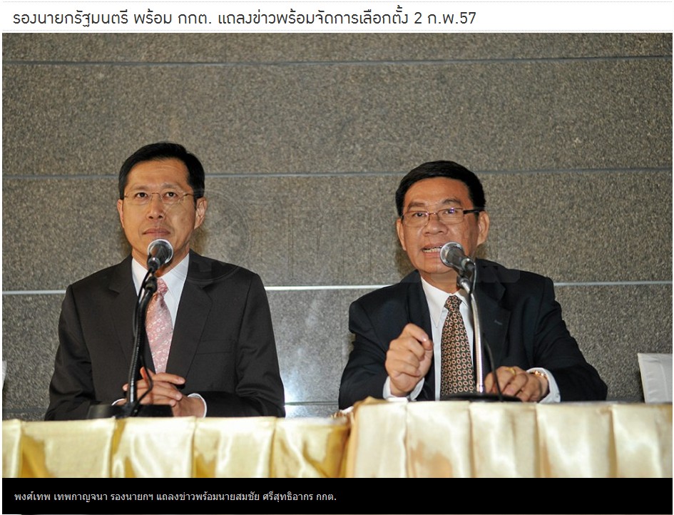 รองนายกฯพร้อม กกต.แถลงข่าวพร้อมจัดการเลือกตั้ง 2 ก.พ.57..อ้าว ม็อบทำลายประเทศจะโต้ด้วยมุขใดจึงจะไม่โดนข้อหากบฏเพิ่ม คิดๆ