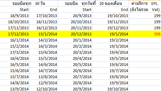 สมัครใช้บริการวันที่ 18/09/2013 ในขณะที่รอบบิลเบอร์รายเดือนผมจะเป็นทุกวันที่ 20 - 19 ของอีกเดือน
