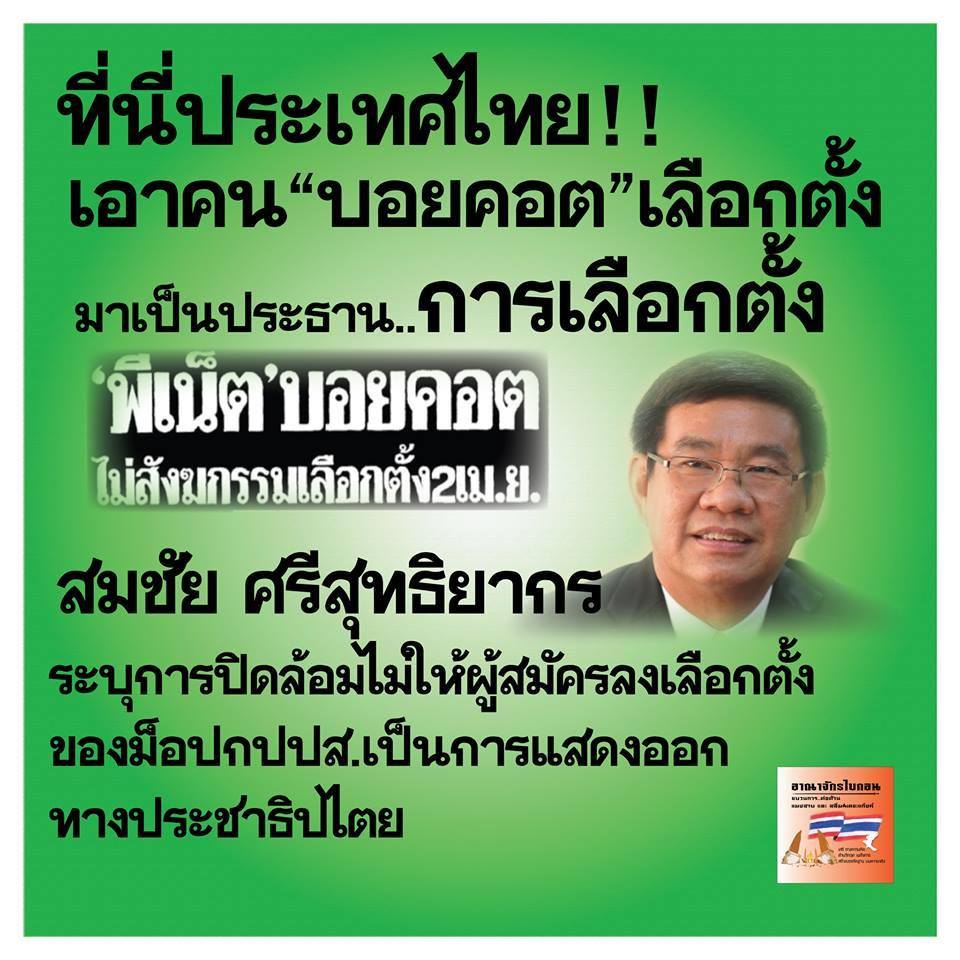 กกต.มองแต่สิทธิของผู้ชุมนุมขัดขวาง แต่ไม่ได้มอง สิทธิของประชาชนที่ถูกขัดขวาง ไม่ให้ลงสมัครรับเลือกตั้งและไม่ให้ใช้สิทธิลงคะแนน โดยเฉพาะประเด็นสำคัญก็คือถ้าเลื่อนการเลือกตั้งไปแล้ว การชุมนุมจะยุติหรือไม่ จะมีการ บอยคอตการเลือกตั้ง อีกหรือไม่