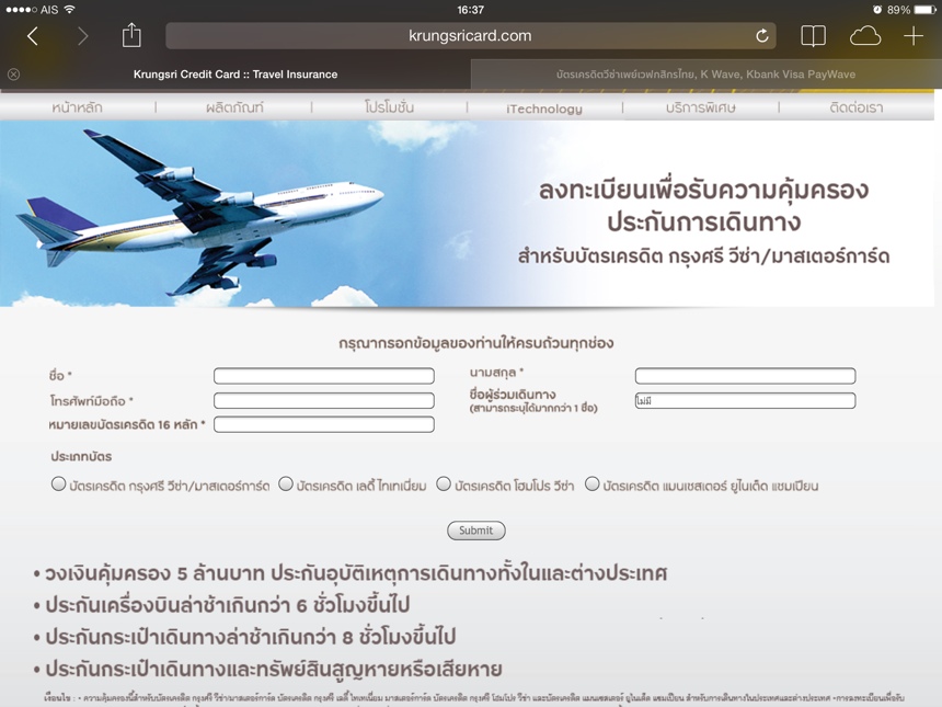 บัตรเครดิตกรุงศรี - สอบถามเรื่องประกันภัยการเดินทาง