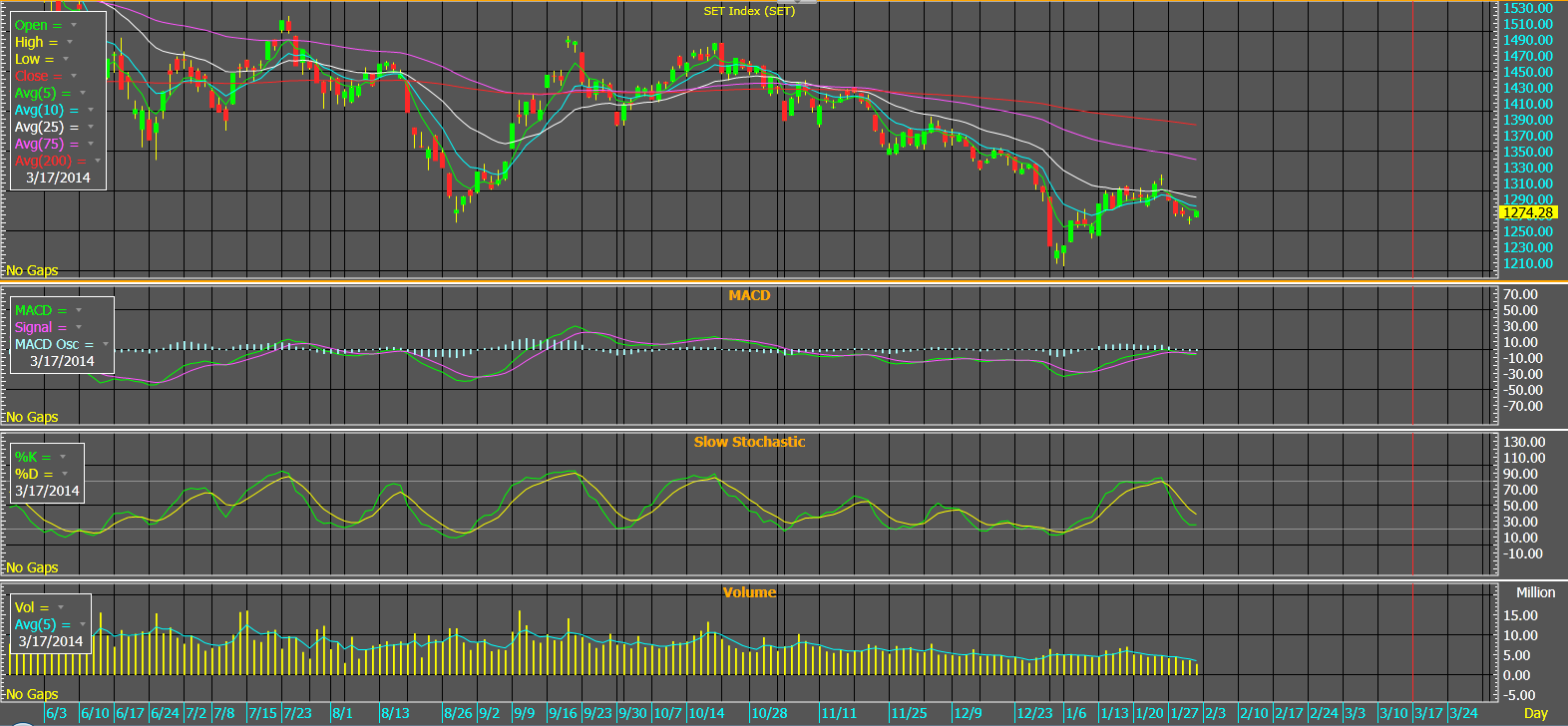 สวัสดีครับ วันนี้ SET ยังทรงๆอยู่และไม่ทำ Break ลงมาที่ support area ได้ถือว่ายังแข็งแรงอยู่แต่จากที่วัดดูการ oversold แล้วยังไม่เข้าเขตนั้น โดยปกติตามหลักการจะวิ่งลงไปแต่ถ้าตลาดไม่สนใจก็ไม่จำเป็นต้อง