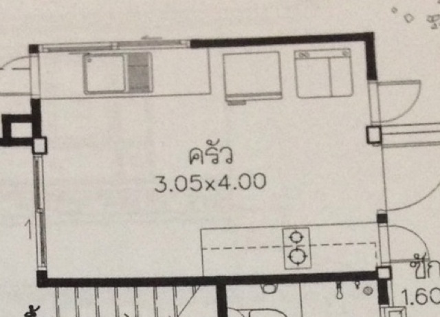 แบบที่สองตู้เย็นต้องอยู่อีกฝั่งคู่กับโต๊ะเตรียมของ