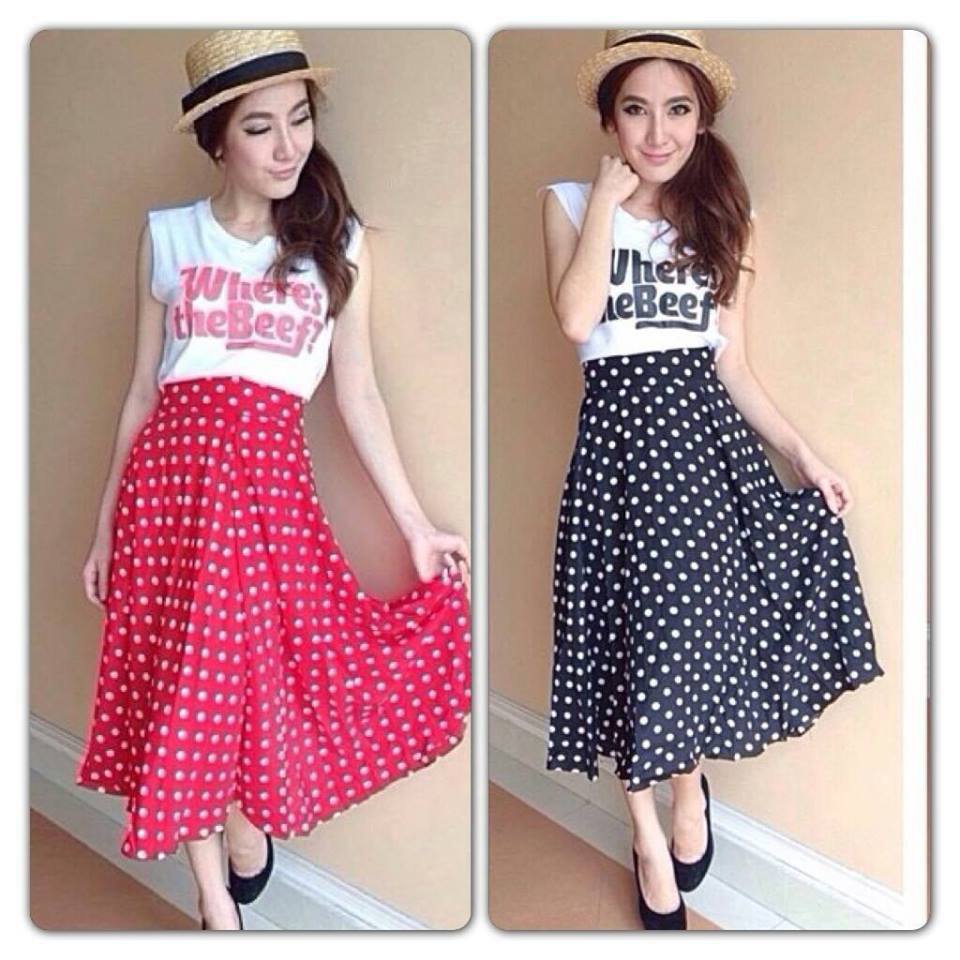 ส่งต่อเสื้อ+กระโปรงลายจุดสีแดง ส่งฟรีลงทะเบียน