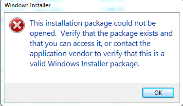 This installation package could not be opened verify that the package. ใครพอจะมีวิธีแก้มั้งครับ หมดหนทางแล้วจริง ๆ