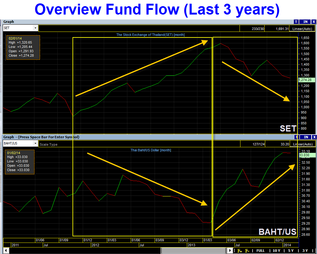 หลายวันมานี่ผมนั่งดูข่าวช่อง TV Online ของ Bloombreg ฝรั่งเค้าคุยกันเรื่อง QE ที่จะมีผลกระทบกับ Emerging Markets มาเป็นประเด็นพอสมควร คนไข้น่าจะฟิ้นแล้ว ลดการฉีดยาปฏิชีวนะกระตุ้นลงเรื่อยๆ ผลข้างเคียงของการใช้ยาปฏิชีวนะต่อจากนี้ คือ โรคไหลย้อน ที่น่าจะเกิดกับประเทศแถบบ้านเรา สสารไม่หายไปจากโลก เม็ดเงินต่างชาติที่เข้ามาลงทุนในบ้านเราก็เช่นกัน เมื่อพีใหญ่ฟื้น นักลงทุนต่างชาติโยกเงินกลับไปลงทุนที่บ้านเกิด คราวนี้ก็จะเริ่มได้เห็นว่าหุ้นตัวไหนบ้างที่สุขภาพแข็งแรงมีภูมิต้านทานที่แข็งแกร่งพอ หุ้นที่ฝรั่งถือคงจะลงหนักอย่างที่เราเห็นกัน อย่างเช่น SIRI QH อันนี้ต้องยอมรับว่า จ้าวเป็นฝรั่ง