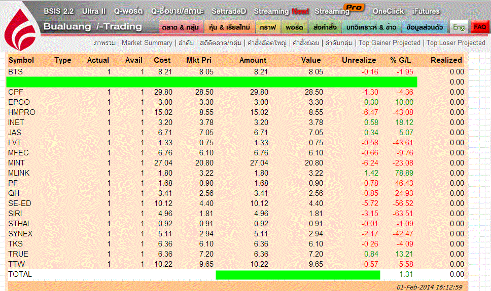 ต้องขอบอกก่อนเลยว่า Port 1 หุ้นเขียวแล้วววว แม่เจ้าาาาาาาาาาาา ไม่น่าเชื่อ -*-'' จากเมื่อก่อนติดลบ(ตอน Set ปรับฐานไปแถวๆ 15xx จุด ณ ตอนนี้ Set กลับมาใกล้แตะ 160