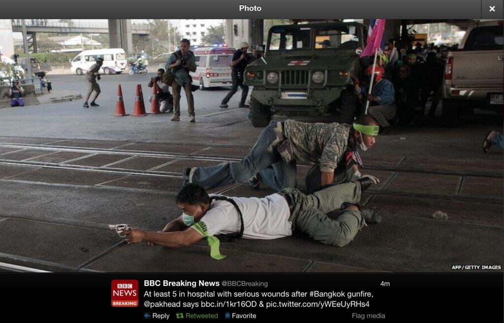 การ์ค กปปส. ยิงกันเอง เนื่องจากผิดใจไม่ยอมให้รถยนต์เข้าพื้นที่ ยิงพวกเดียวกันรับขวัญวัน Shutdown Bangkok