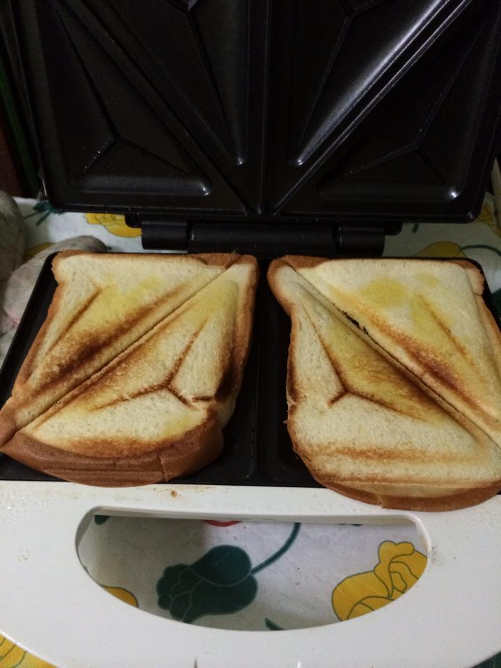 1. เอาขนมปังทาเนย ทั้งหน้าและหลังเลย