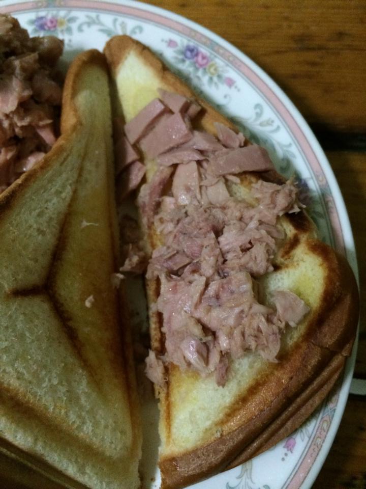 3.ขั้นตอนสุดท้าย เอาทูน่ามาวางเลย หรือว่าจะใส่มายองเนสเพิ่มก็ได้นะ อร่อยมากกกกกกกกกกก !! แต่เราไม่มีพอดี อิอิ