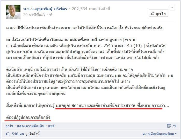จำเป็นครับที่ท่านจะต้องออกไปทำหน้าที่เพื่อรักษาสิทธิ์ อันหวงแหนที่สุด หวังว่าเลือกตั้งผู้ว่าฯกทม. คราวหน้า