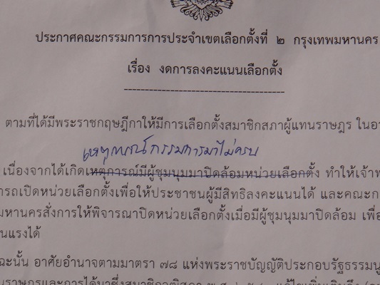 และได้ขอให้เจ้าหน้าที่แก้ไขข้อความ ว่าสาเหตุจากเจ้าหน้าที่ไม่มา ไม่ใช่จากการชุมนุม
