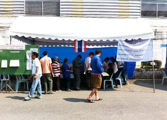 เมื่อเช้าไปใช้สิทธิ์มาแล้วครับ นนทบุรี หน่วยที่ 12 ในซอยเรวดี ปกติทุกครั้ง ที่มีการเลือกตั้ง หน่วยจะตั้งอยู่ทางซ้ายมือริมถนน ถ้าเข้ามาจากปากซอยเรวดี จะเลยแยกวัดสมรโกฏ ไปหน่อย แต่ปีนี้ ย้ายฝั่งจากซ้า