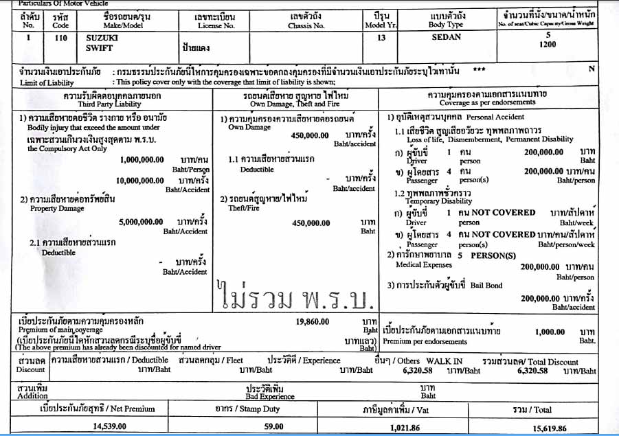 ใบเสนอต่อประกันรถ Swift ECO มาแล้ว ราคานี้แพงมั้ยคะ