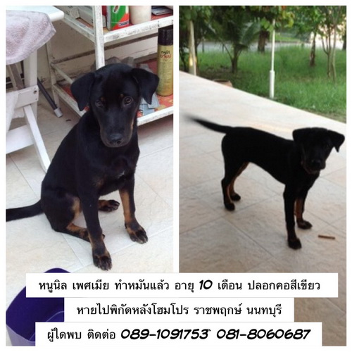 ประกาศตามหา สุนัข ชื่อหนูนิล เพศเมีย สีดำ หูตก อายุ 10 เดือน ทำหมันแล้ว