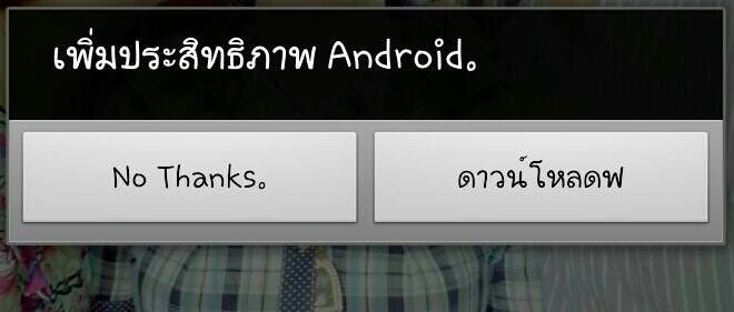 ถามให้เพื่อนน่ะครับ เห็นบอกเข้าเว็บโหลดเพลงไป ตอนที่ทิ้งเครื่องไว้ซักพักมันจะมี POP up เด้ง ขึ้นมาอยู่เรื่อยๆ พวกเพิ่มความเร็ว Android ให้กด yes no ผมลองหา พวก scan malware มาใช้ ของDR. 7 มั้ง ก็เ