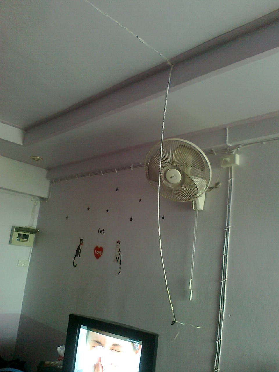 แต่ยังดีที่มีสายไฟรั้งเอาไว้ด้านข้าง มันเลยไม่ได้ร่วงลงมาตรงๆ (ไม่งั้นลูกสาวผมเละแน่)