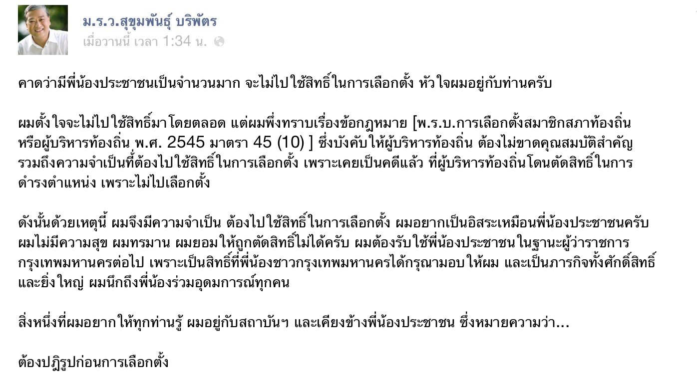 ตามที่ท่านได้โพสแจงถึงการต้องไปเลือกตั้ง เพื่อคงอำนาจการเป็นผู้ว่าฯไว้
