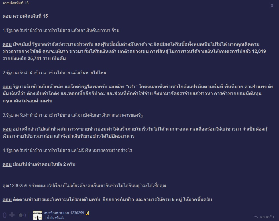 ตอบท่านเจ้าของคำตอบเรื่องจำนำข้าว