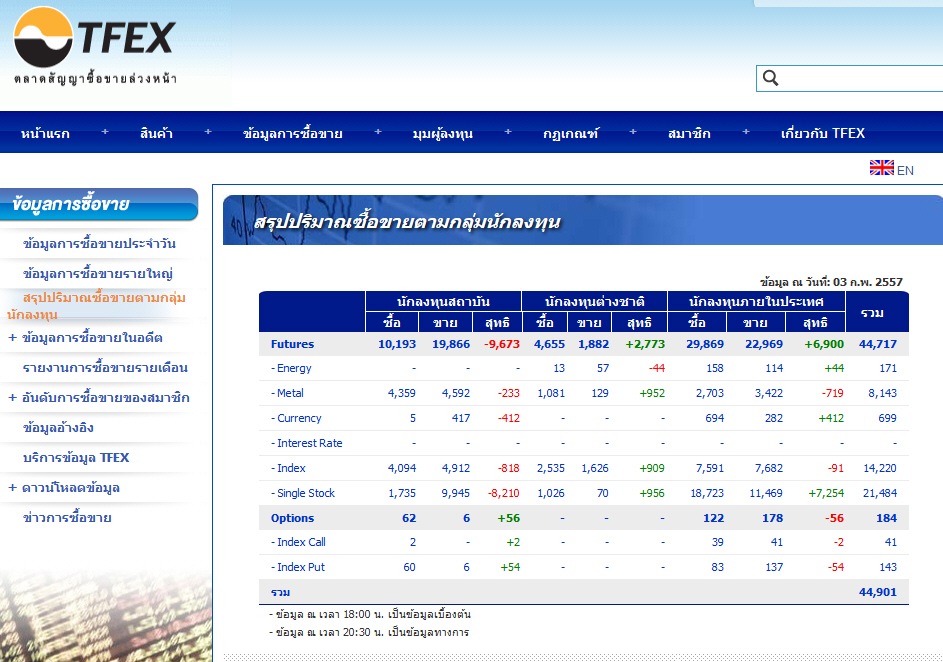 ^v^สรุปยอดTFEX 3/2/57 Index ต่างชาติขายาว /เม่า+กองทุนขาสั้น พรุ่งนี้ลุ้นกันต่อ^v^