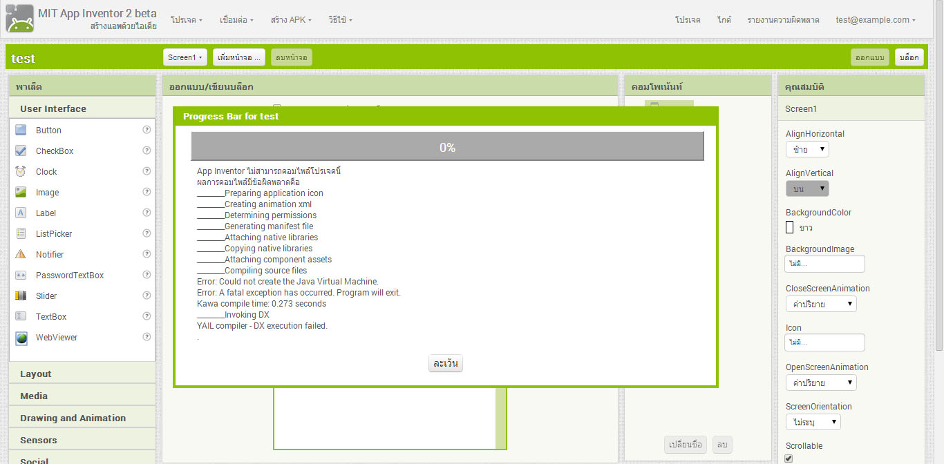 App Inventor แบบ Offline สร้าง apk ไม่ได้ แก้อย่างไรครับ