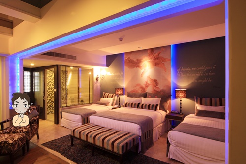 แอ๊ดดดดดดด ถึงเวลาเปิดประตูห้องนอน ห้องนี้สามารถนอนได้ 4 คนเป็น Family Room เหมาะพอดีครอบครัวเราพอดี คริคริ โรงแรมที่นี่จะเป็นโทนลายๆ ทั้ง Lobby ทางเดิน และหมอนอิง เป็นโทนใกล้เคียงกันหมดเลย แต่ที่ถูกใจก็ไฟสีฟ้าๆนั่นแหละ ดูมีมิติดี สวยเนอะ ถ่ายรูปก็สวย ><