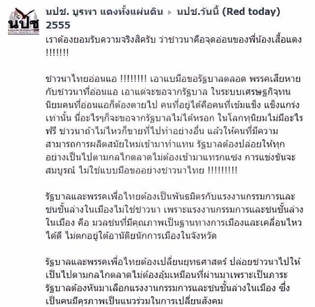 เมื่อชาวนากลายเป็น "จุดอ่อน" ของพี่น้องเสื้อแดง "จุดอ่อน" จึงสมควรต้องโดนกำจัดทิ้ง