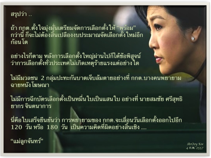 ยืนยันว่า การพยายามของ กกต.จะเลื่อนวันเลือกตั้งออกไปอีก 120 วัน หรือ 180 วัน เป็นความคิดที่ผิดอย่างสิ้นเชิง ..