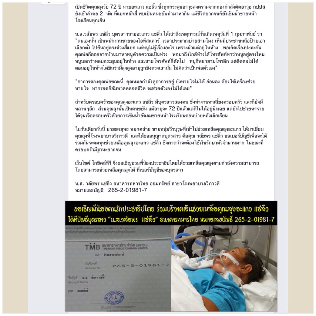 เพิ่มเติมนะคะ หากใครอยากจะช่วยเหลือครอบครัวของคุณลุงท่านนี้ ที่อาจต้องกลายเป็นอัมพาตตลอดชีวิต