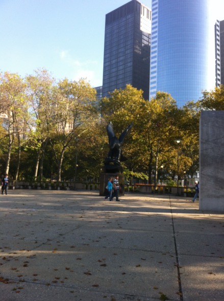 นั่งมาถึงแถวๆ south ferry station ขึ้นมาจากสถานีแล้วเดินย้อนขึ้นไปทางสวนสาธารณะ Batterry Park ค่ะ